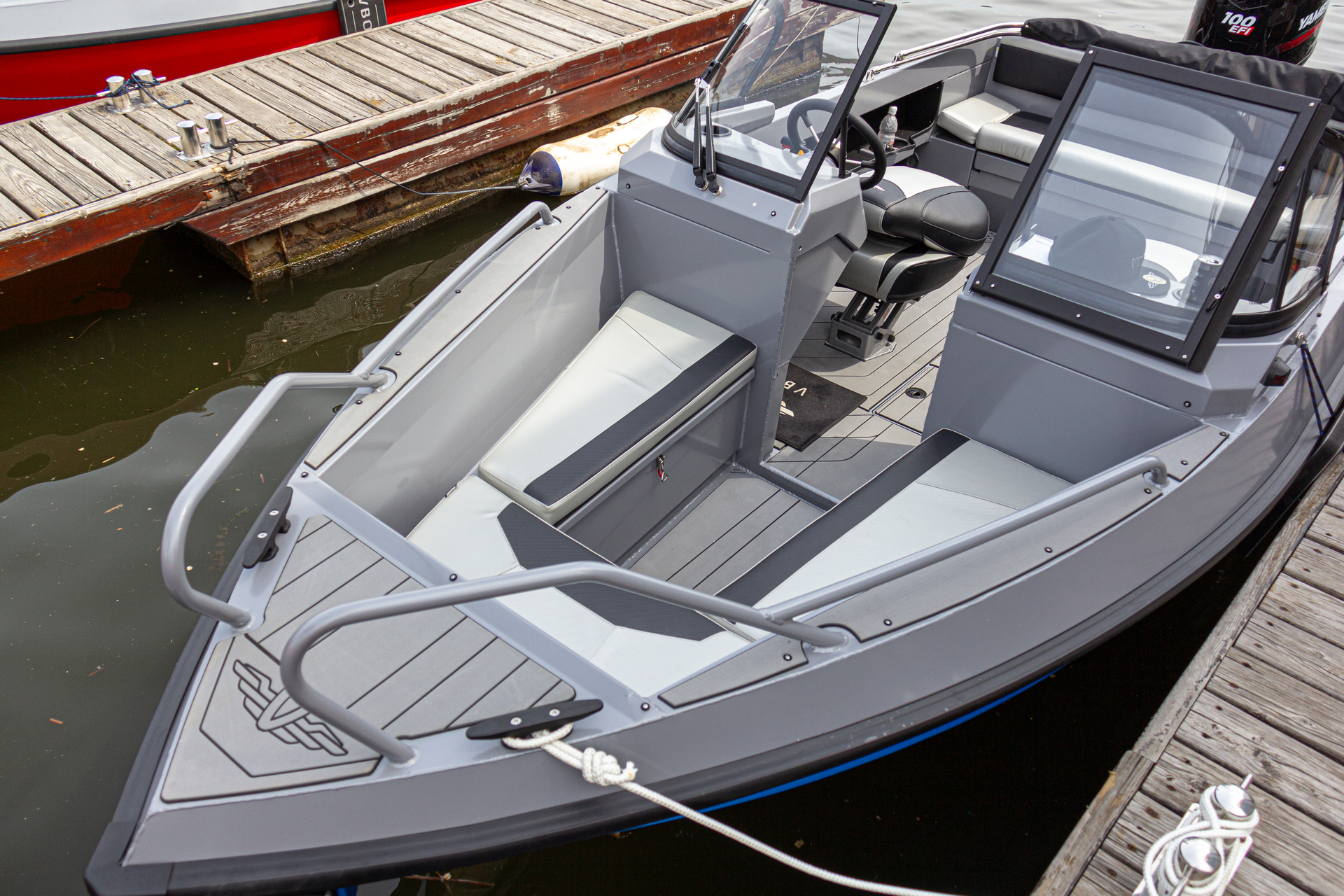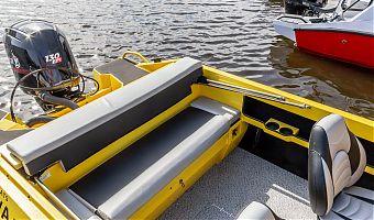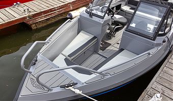 Ковролин на лодках профессиональной серии FishPro должен быть не только устойчивым к влажности и ультрафиолету, но и иметь специальную структуру, не позволяющую острым рыболовным крючкам цепляться за него.